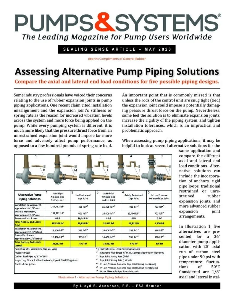 Lloyd Aanonsen P.E., President of General Rubber Corporation, has authored many technical articles in partyprominent periodicals such as WaterWorld and Pumps & Systems, highlighting some of the critical performance benefits of General Rubber products. From system optimization to performance replacements, we have provided our engineering and experiential insights through well-known industrial periodicals.